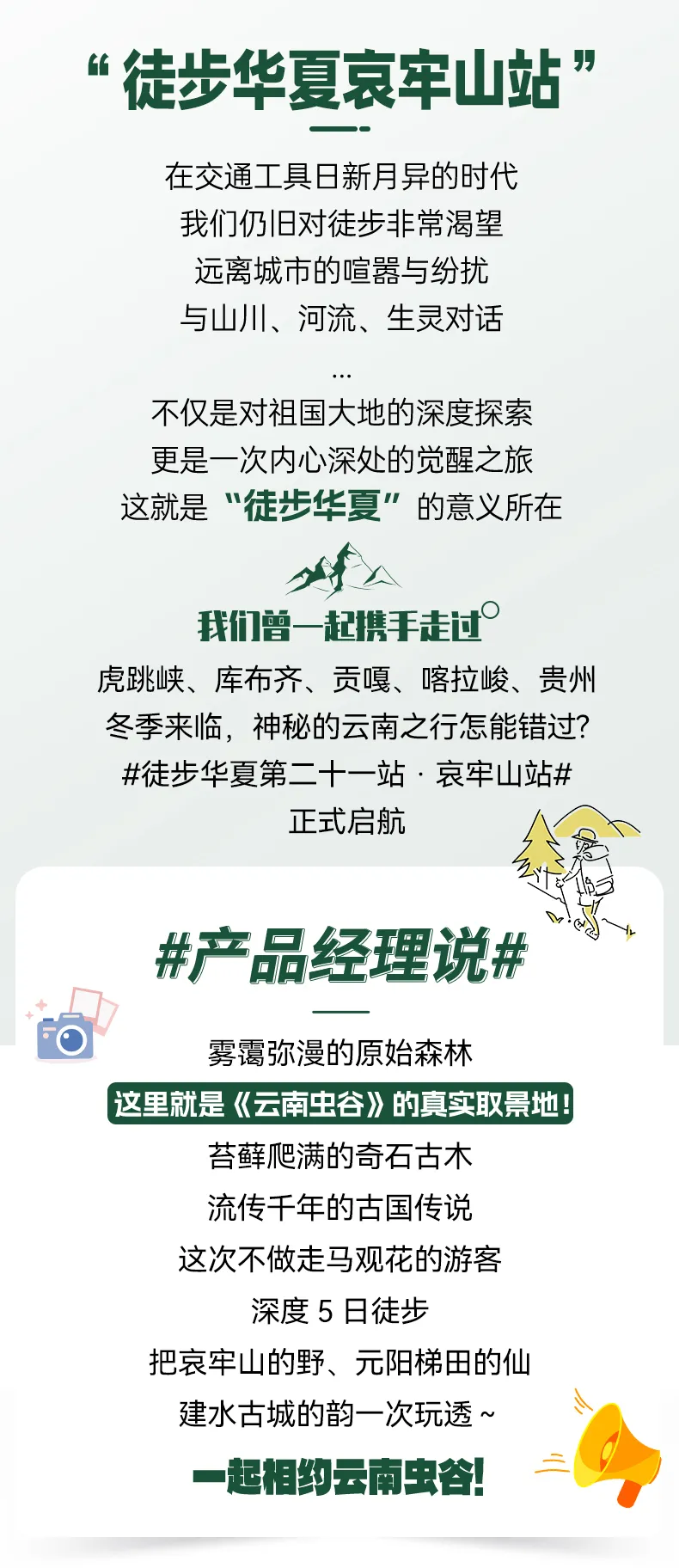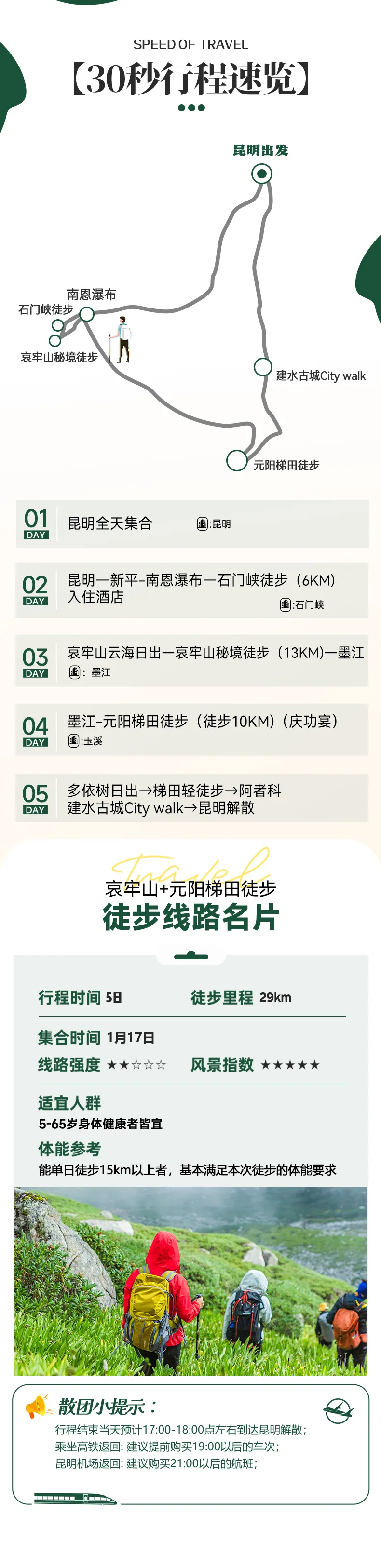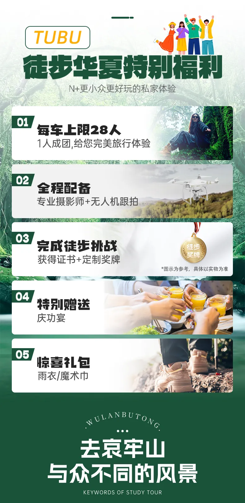 本产品以徒步旅行为主,适用于5-65岁身体健康人士