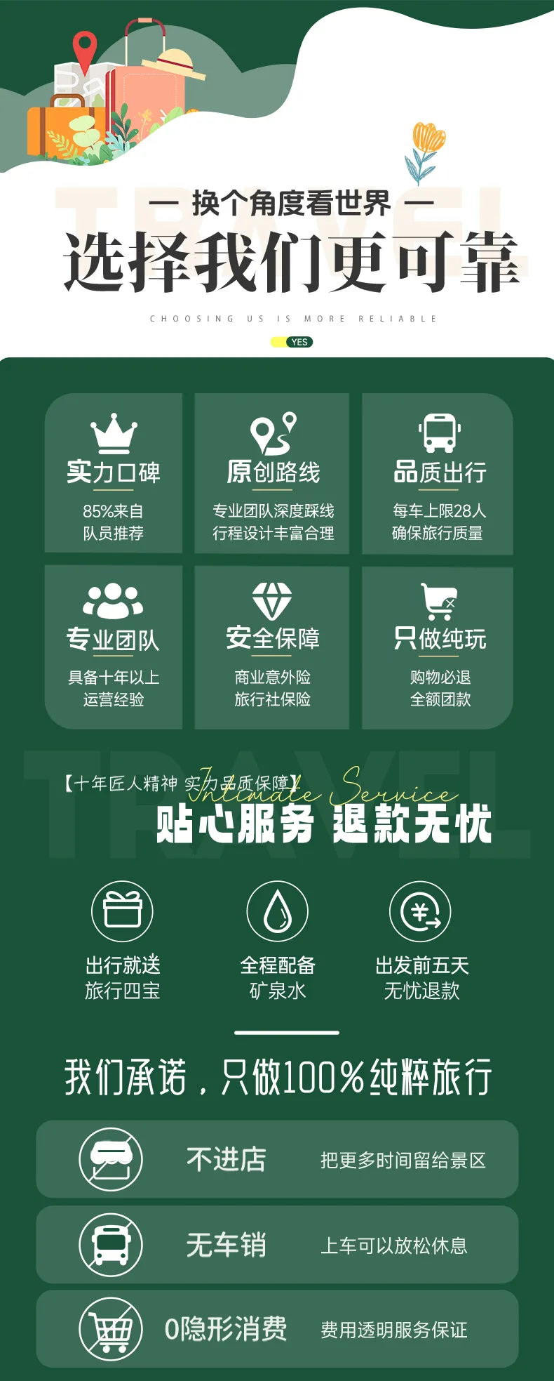 ● 在活动行程中,景区、餐厅、休息区等地存在非本公司安排的购物场所,本公司提醒您,理性消费并索要凭证,如产生消费争议,将由您与售卖商品的商家自行解决。