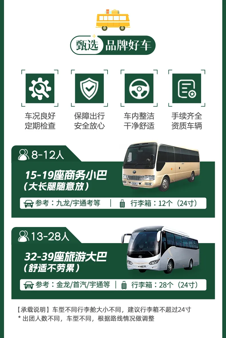 ● 本活动行程实际出行中,在征得客人同意的前提下,领队可能会根据天气、交通等情况,对行程进行适当调整(如调整景点游览顺序、变更集合时间等),以确保行程顺利进行。