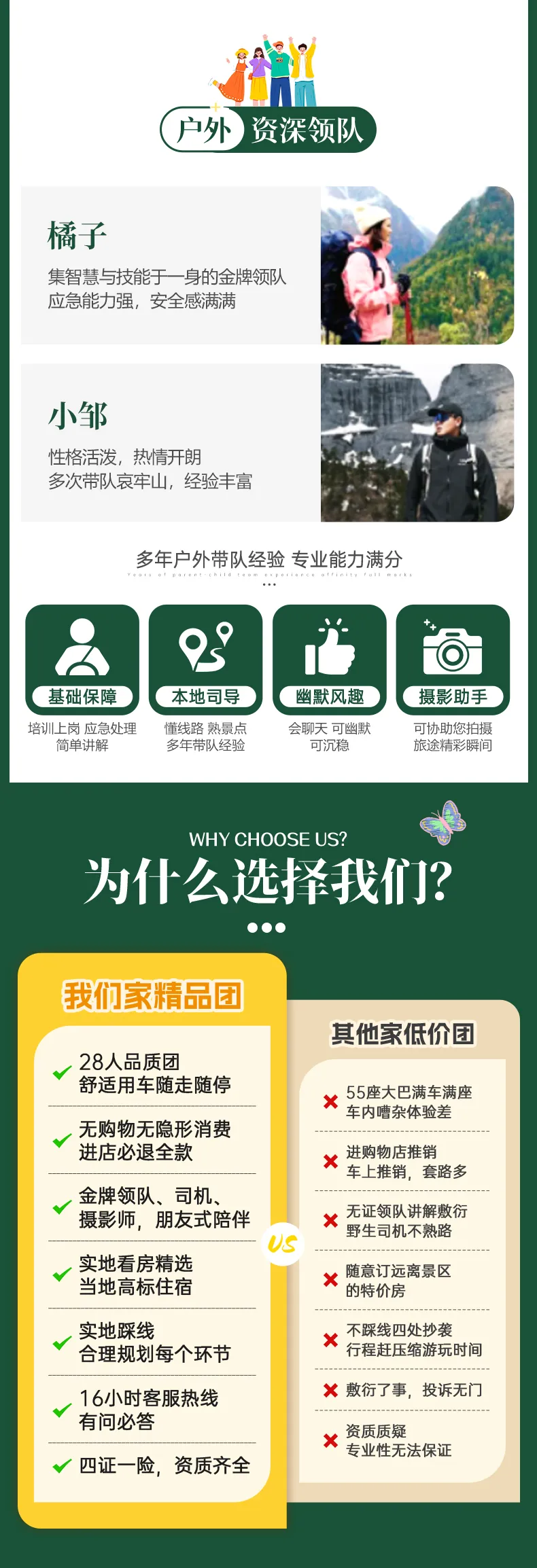 ● 活动介绍页展示的导游领队,可能并非最终实际带队领队,本公司有权根据活动安排等实际情况进行调整,游客报名即表示知晓并理解本情况。