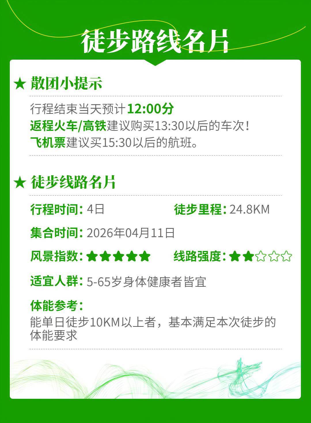 6、 此旅行给大家投保专业户外旅行意外险,保险从集合日开始到活动结束日为止。