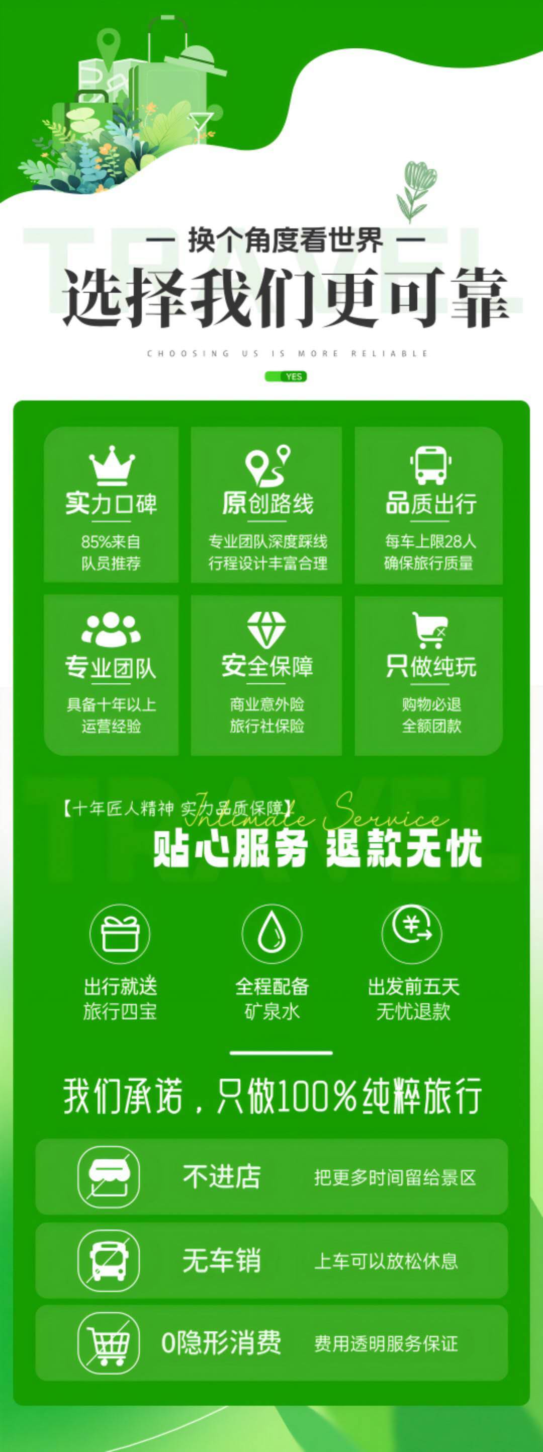 11、 出游过程中,如产生退费情况,以退费项目旅行社折扣价为依据,均不以挂牌价为准。