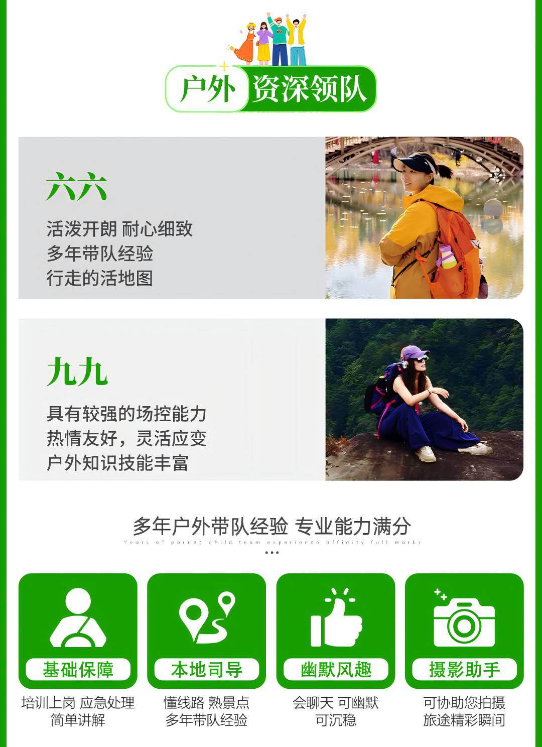 5、 根据旅游法相关规定,不接受未成年人单独报名参加活动;未满18周岁需由监护人带领,并全程由监护人负责照顾。