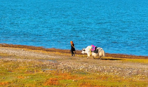 高原之上的“青色之海”呈现不同程度的蓝青色宛如被蓝天所染,满目清凉有着无可比拟的纯粹和沉静