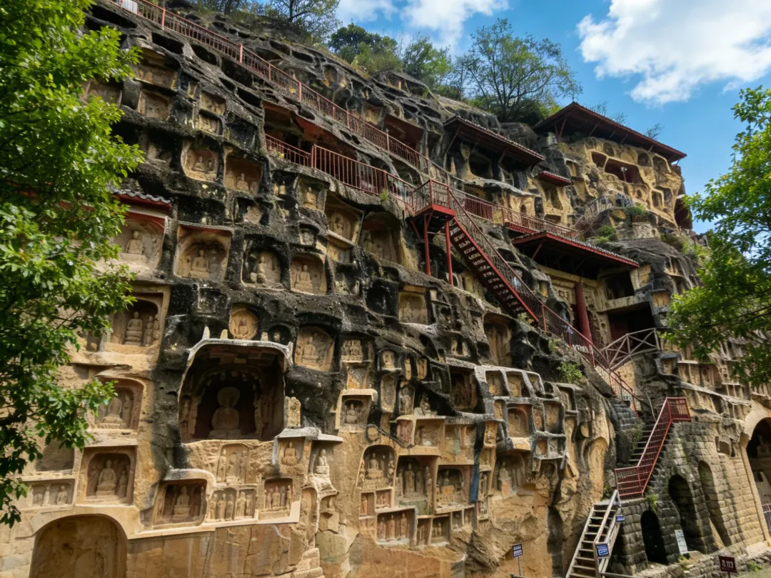 早餐后,我们乘车前往皇泽寺(车程约15分钟,5公里)【皇泽寺】是中国唯一纪念女皇帝武则天的祀庙,始建于北魏晚期(距今 1500 余年),原名乌奴寺、川主庙;690 年武则天称帝后,赐名 “皇泽寺”,取 “皇恩浩荡,泽及故里” 之意;此后历经隋唐至明清多次扩建、修葺,现存建筑多为清代遗构,但核心石窟与造像保留了北魏至唐的原貌;1961 年列入首批全国重点文物保护单位,2006 年获评国家 4A 级景区。也是中国WEl一的女皇帝武则天的祀庙,气势宏大,殿宇轩昂,身价非凡。现存的北魏晚期至唐代的57个龛窟,1200余尊摩崖石刻造像。